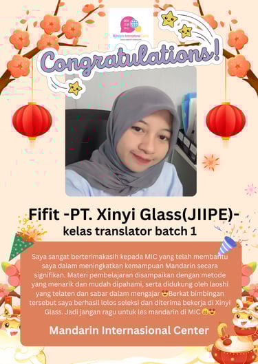 Kelas translator di Mandarin International Center sangat membantu saya lulus HSK dengan percaya diri.