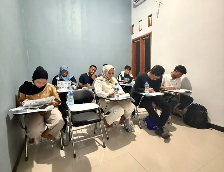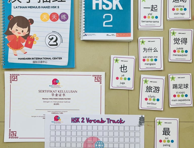 Ruang kelas nyaman, pengajar bersertifikat, dan modul lengkap untuk sukses HSK.