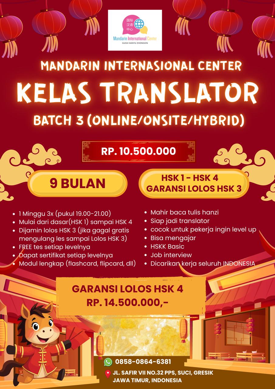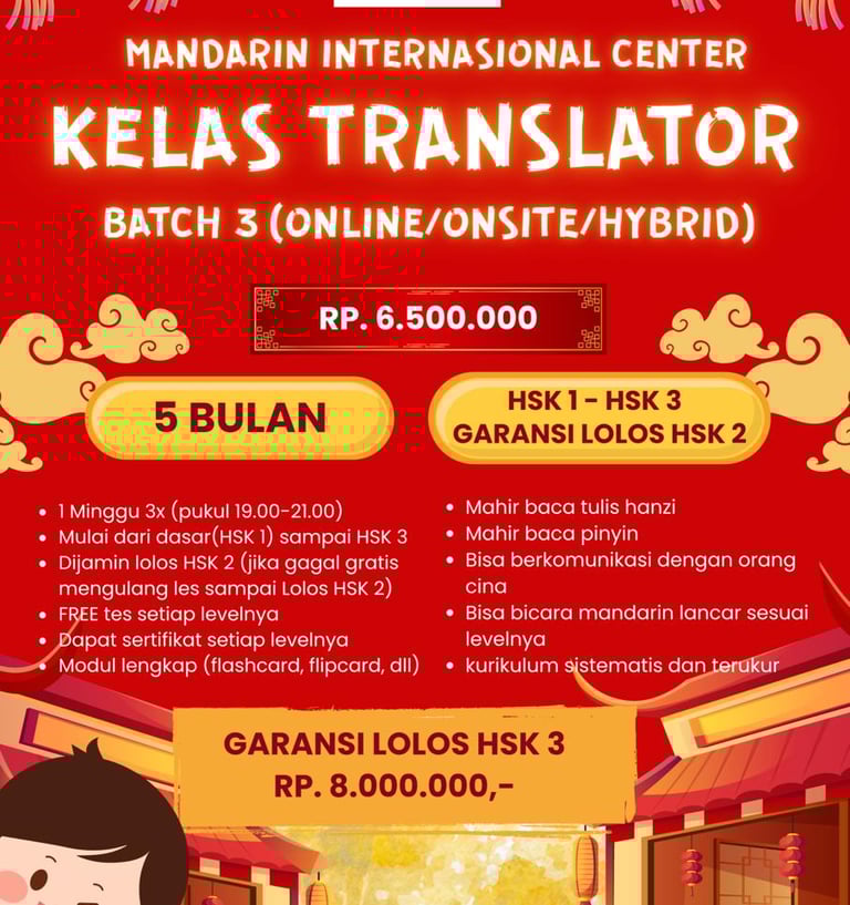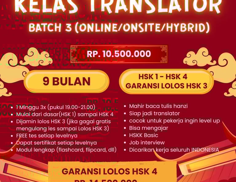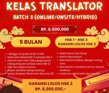 Ingin berkarir di perusahaan multinasional atau jadi penerjemah handal? Bergabunglah di Kelas Translator Batch 3! Mulai dari nol hingga mahir HSK 3